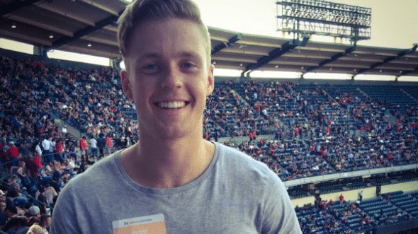 This isn’t his first time at SoCal Harvest as he has been attending since his family moved from Florida. It just so happens that his dad is opening up in prayer for tonight’s crusade. Sy’s dad is Pastor John Randall of Calvary Chapel San Juan Capistrano, where he has been serving as senior pastor for the last 10 years and is the featured speaker on the Bible teaching radio program A Daily Walk.